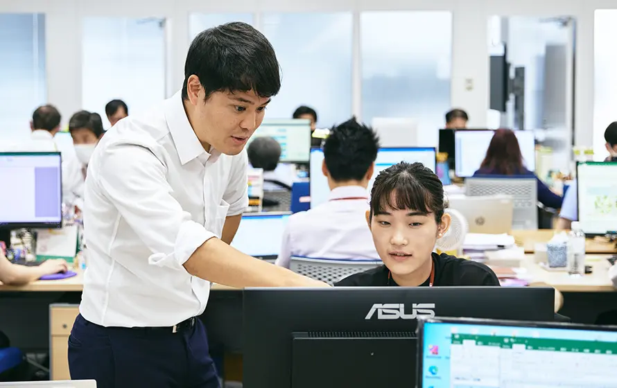 一般的なSIerのような 営業担当/技術担当/サポート担当・・・といった分業制を採らず、全員が「CE職」という当社独自のポジションでプロジェクトの全工程に携わります。お客様のニーズの把握から、設計、品質管理、提案、そして導入後のアフターフォローまで。ワンストップで完遂することがCE職の役割です。開発業務(プログラミング)だけはパートナー企業に外注していますが、それ以外は全てCE職の担当範囲。幅広い知識・スキルが必要とされますが、その期待に応える過程で、プロとしての実力が磨かれていきます。